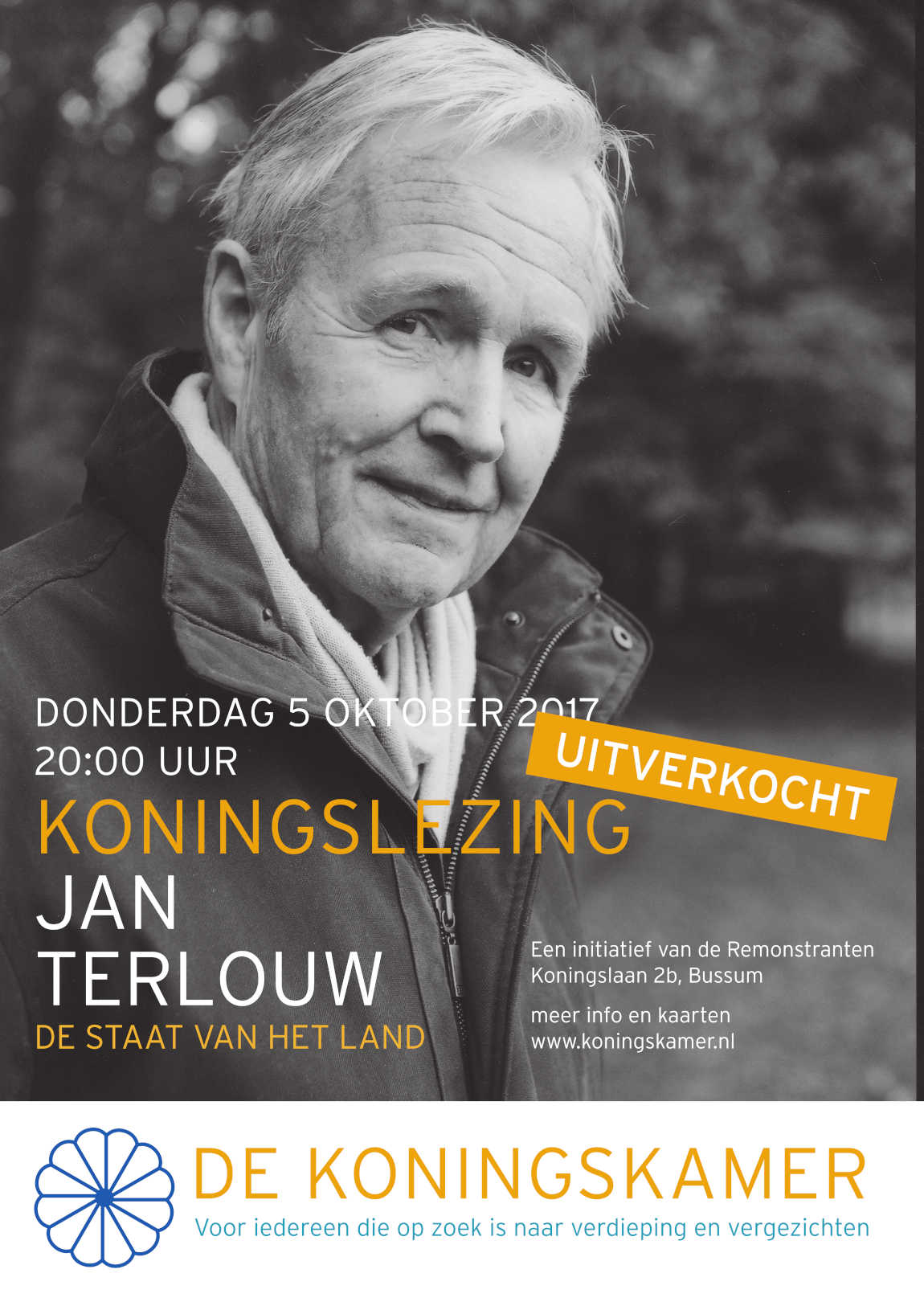 Op 05/10/2017 sprak Jan Terlouw in De Koningskamer (Koningslaan 2b in Bussum). Klik op het affiche voor een uitvergroting.